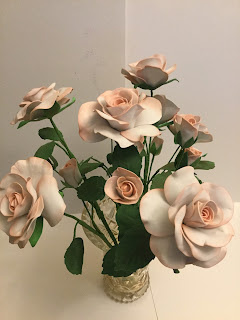I made this bouquet for my daughters boyfriends mother they are made from different coloured silk foamiran and ordinary foamiran coloured with oil pastels it took me quite sometime to make them as you can imagine the big palm leaf took me all of one afternoon she loved them couldn’t believe I had made them products used can be found on https://craftyenjoyments.co.uk/